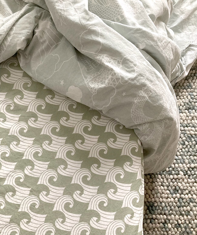 WAVES | Sage | 60x120cm/ 23.5x47" | Fitted Crib sheet